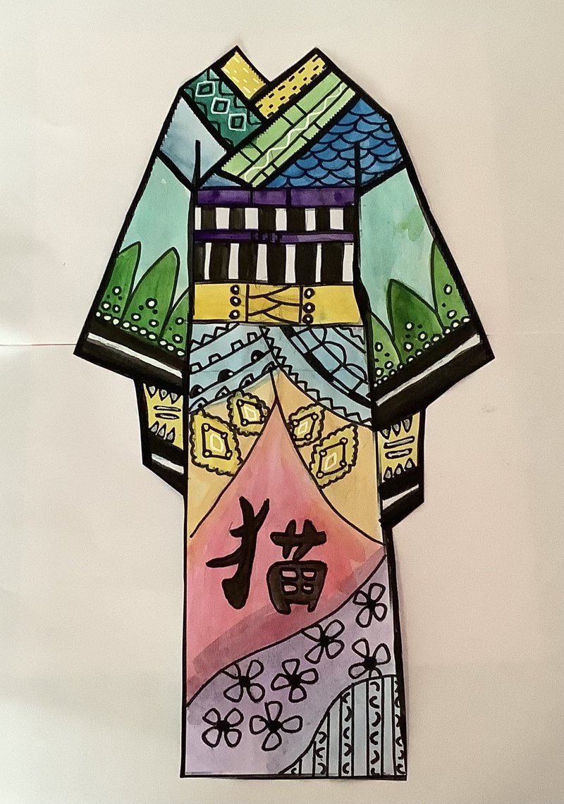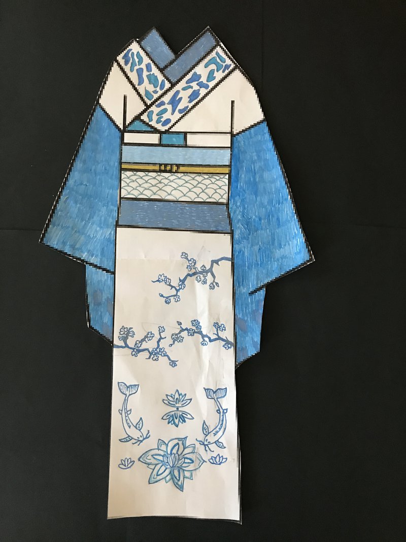 During remote learning, Year 6 has been busy designing their own Kimono. Some girls researched traditional designs and symbols and incorporated these into their own designs.