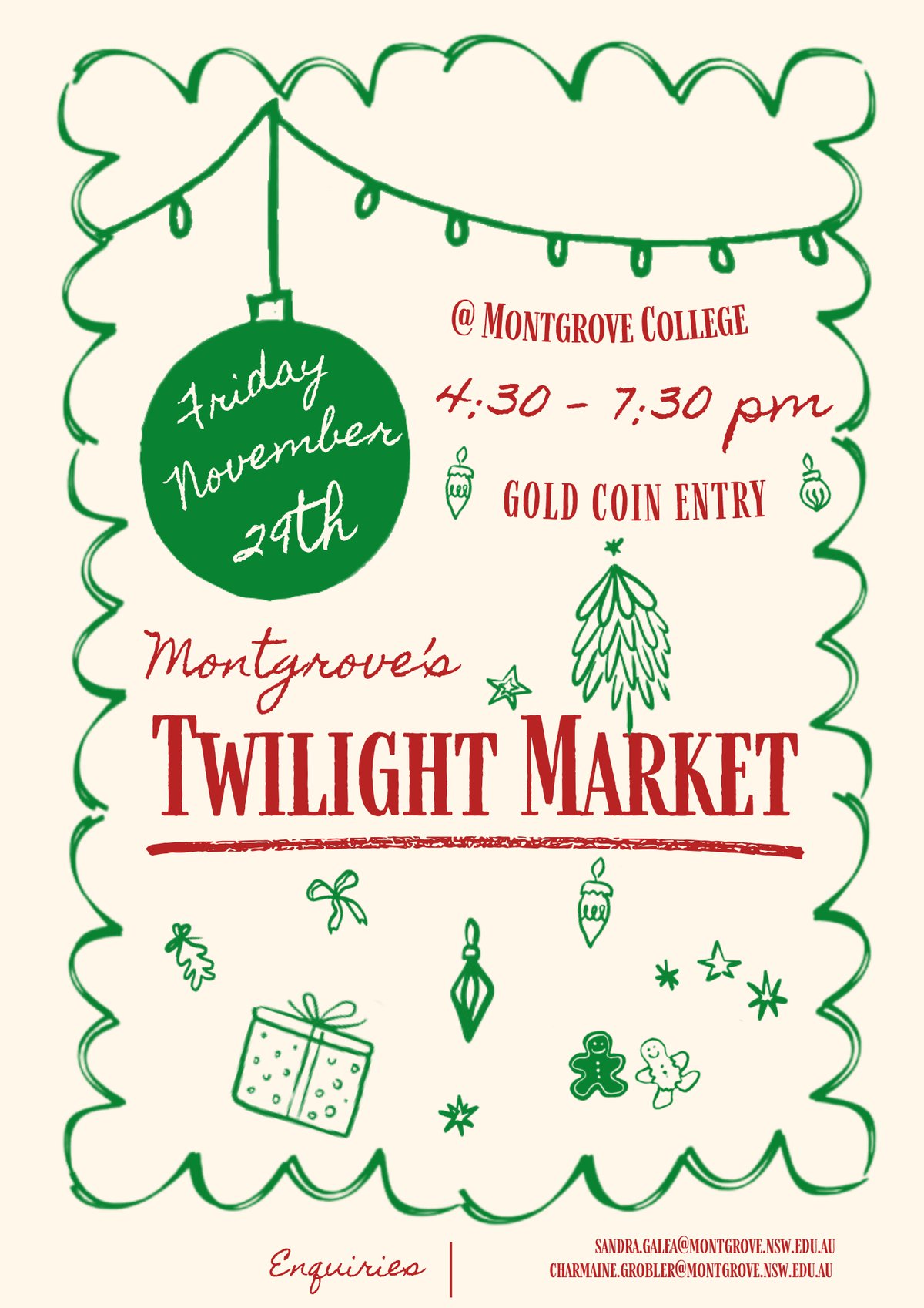 We are excited to share that Montgrove's Twilight Market will be held on Friday 29th November 2024 from 4:30 - 7:30pm. If you, or someone you know, are interested in running a stall, we kindly ask that you fill in the attached Expression of Interest form.