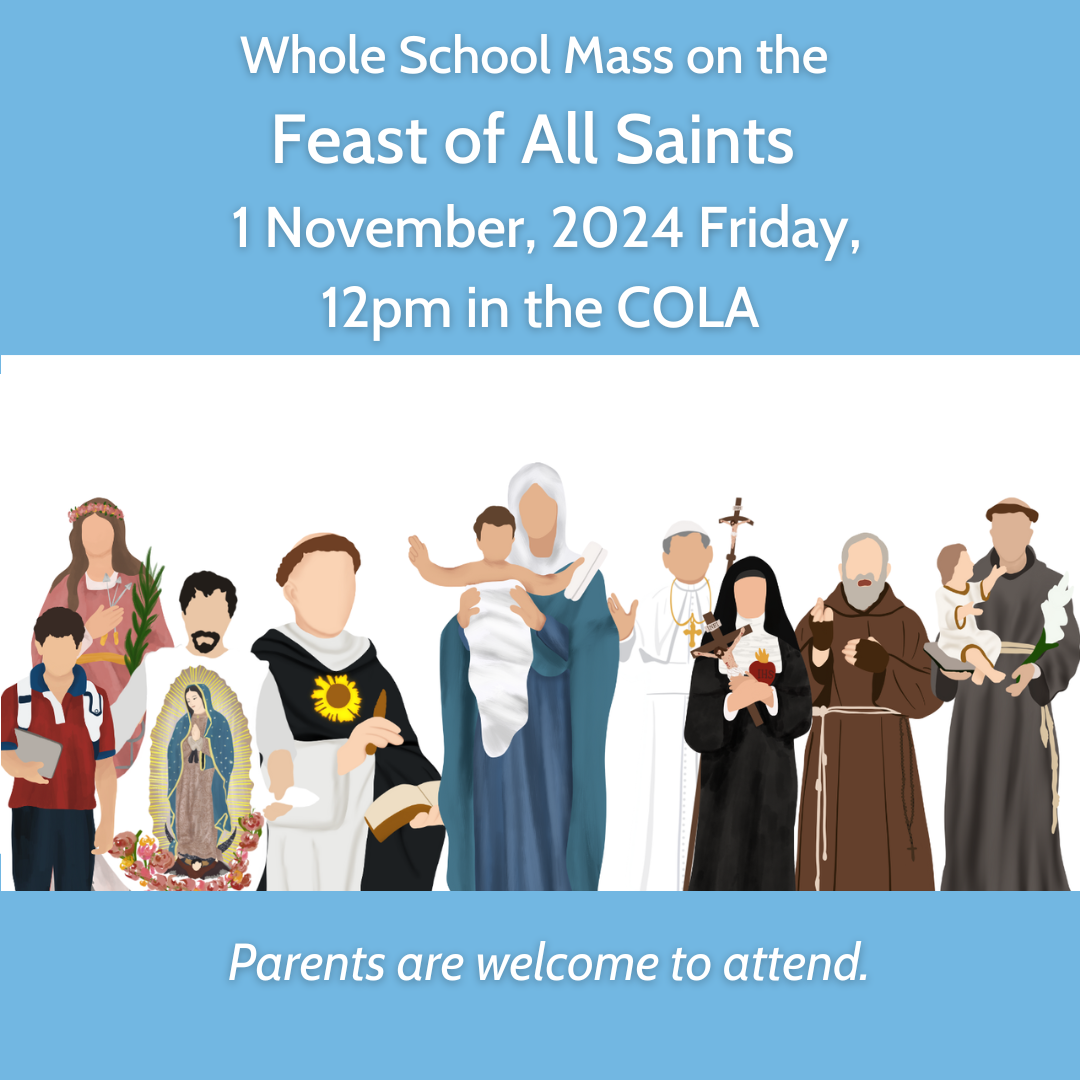 Mass is held Monday to Friday at 12:15pm. Parents are welcome to attend Mass in the Chapel.