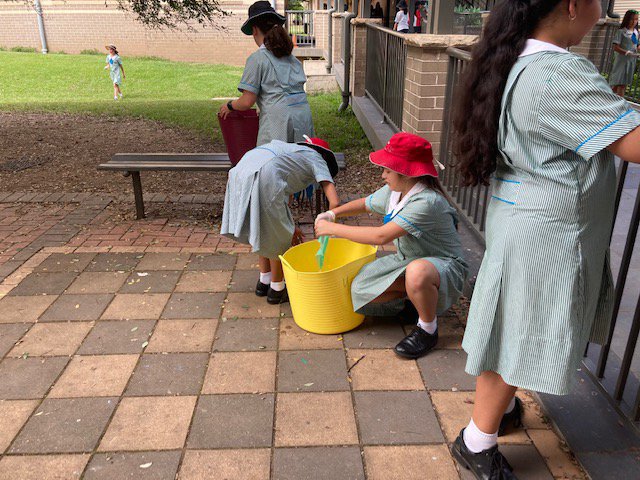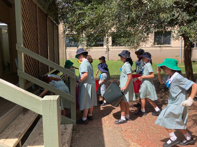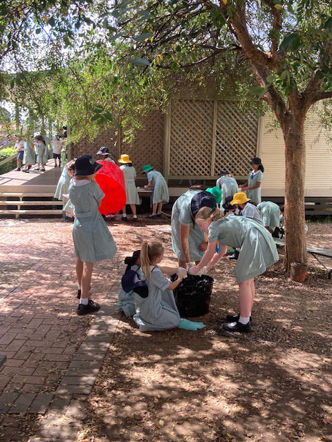 On Friday, 18th March, the Primary students from Kindergarten to Year 6 participated in a "Clean Up Montgrove" afternoon, in honour of Clean Up Australia Day. Some students wore gloves and worked hard picking up rubbish and returning items to their original owners or places. Others cleaned chairs and benches and ensured everything was neat, tidy and in place.