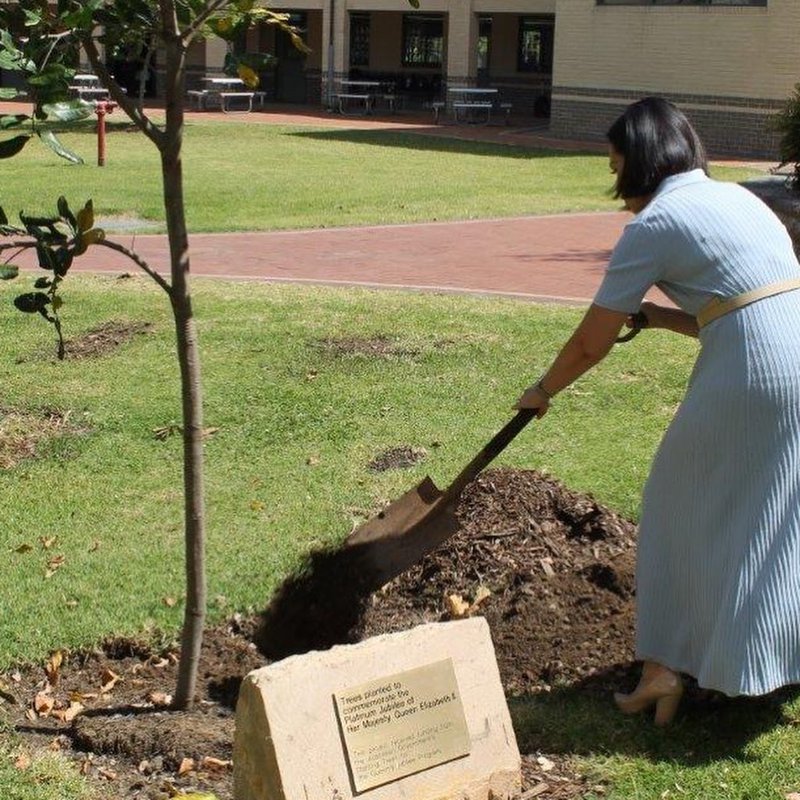 "In Montgrove’s application for Jubilee trees, the College noted that they would beautify the school precinct and enhance shade for students. Well, I believe the trees will provide more than this to the College’s community. The trees, and plaque, will bear as a reminder of a life of great service, and an incredible inspiration to the future female leaders that will be fostered at Montgrove. To some, planting a tree may seem a simple act. However, trees in ancient times, and in religion, poetry, and literature, have been symbols of life, growth, wisdom, and prosperity. Queen Elizabeth II embodied these principles. She challenged young people to meet their potential. Let the trees be a reminder of reaching each of your potentials, as you strive to become leaders, not just of your local community, but in every aspect of what you do."